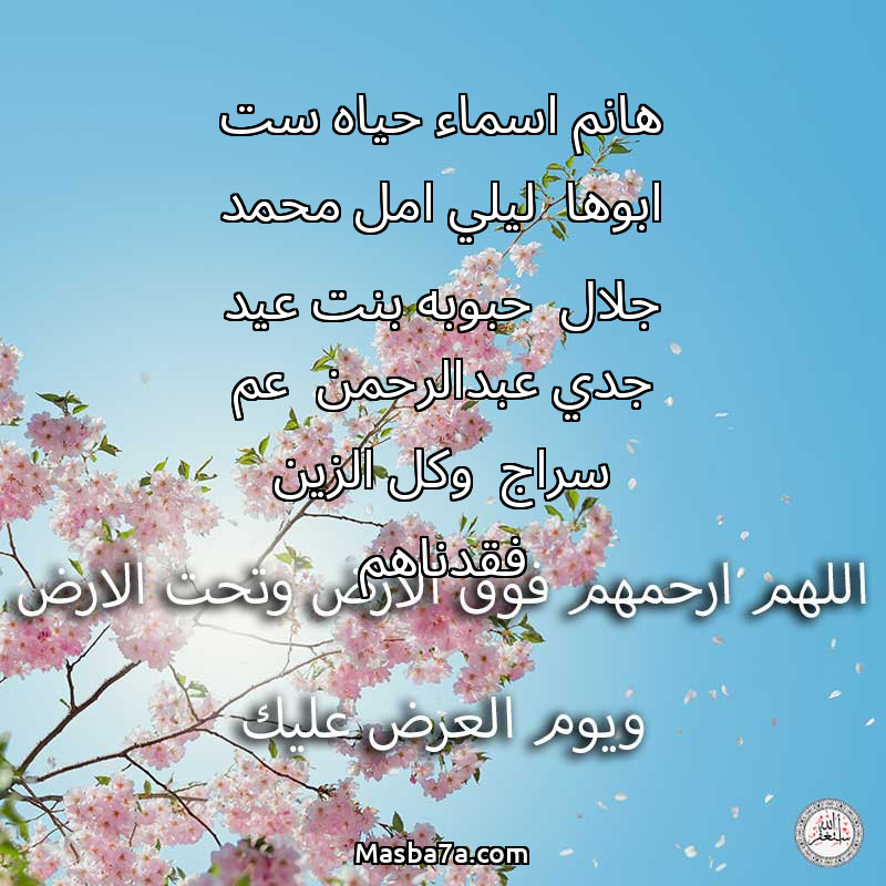 دعاء عن أرواح المرحومين هانم اسماء حياه ست ابوها ليلي امل محمد جلال حبوبه بنت عيد جدي عبدالرحمن عم سراج وكل الزين فقدناهم