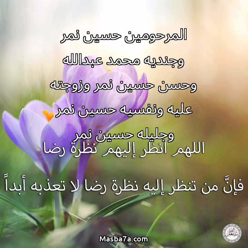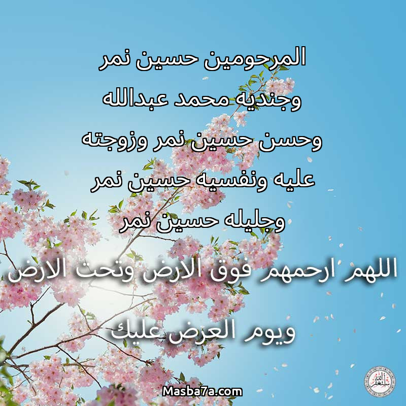 دعاء عن أرواح المرحومين المرحومين حسين نمر وجنديه محمد عبدالله وحسن حسين نمر وزوجته عليه ونفسيه حسين نمر وجليله حسين نمر