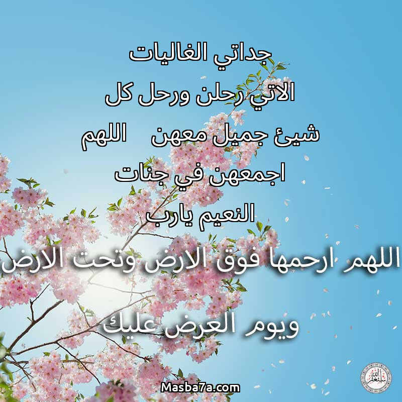 دعاء عن روح المرحومة جداتي الغاليات الاتي رحلن ورحل كل شيئ جميل معهن اللهم اجمعهن في جنات النعيم يارب