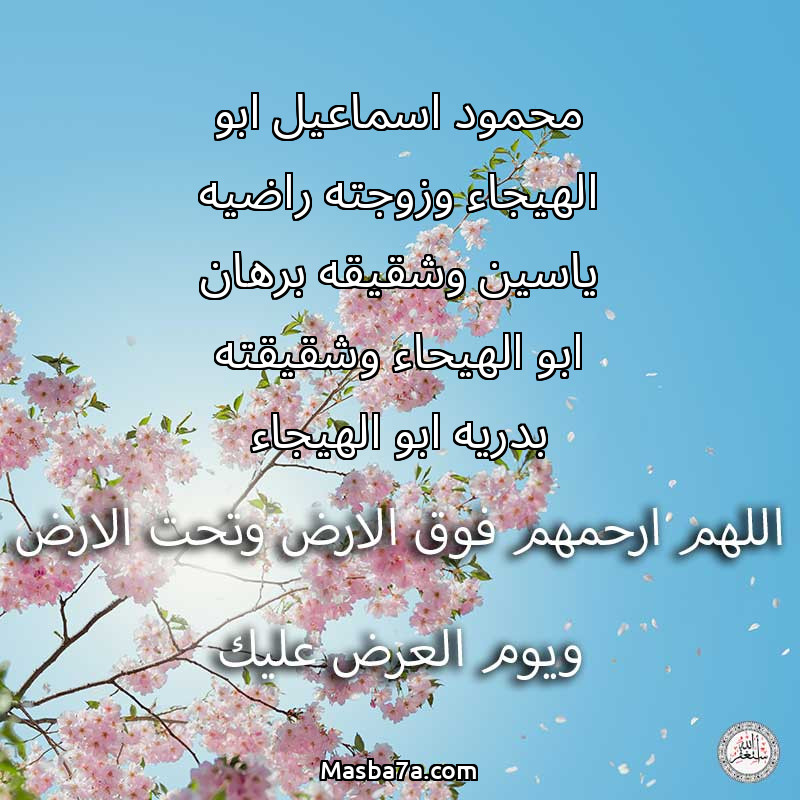 دعاء عن أرواح المرحومين محمود اسماعيل ابو الهيجاء وزوجته راضيه ياسين وشقيقه برهان ابو الهيحاء وشقيقته بدريه ابو الهيجاء